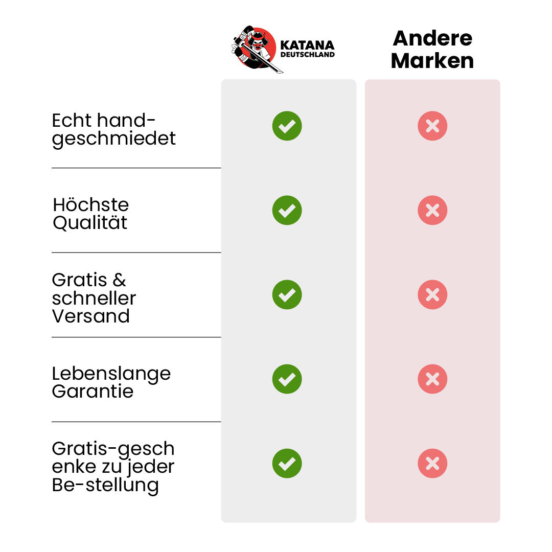 Bei Katana Deutschland sind wir stolz auf die Qualität und Handwerkskunst, die in unsere handgefertigten Katanas und Repliken einfließt.