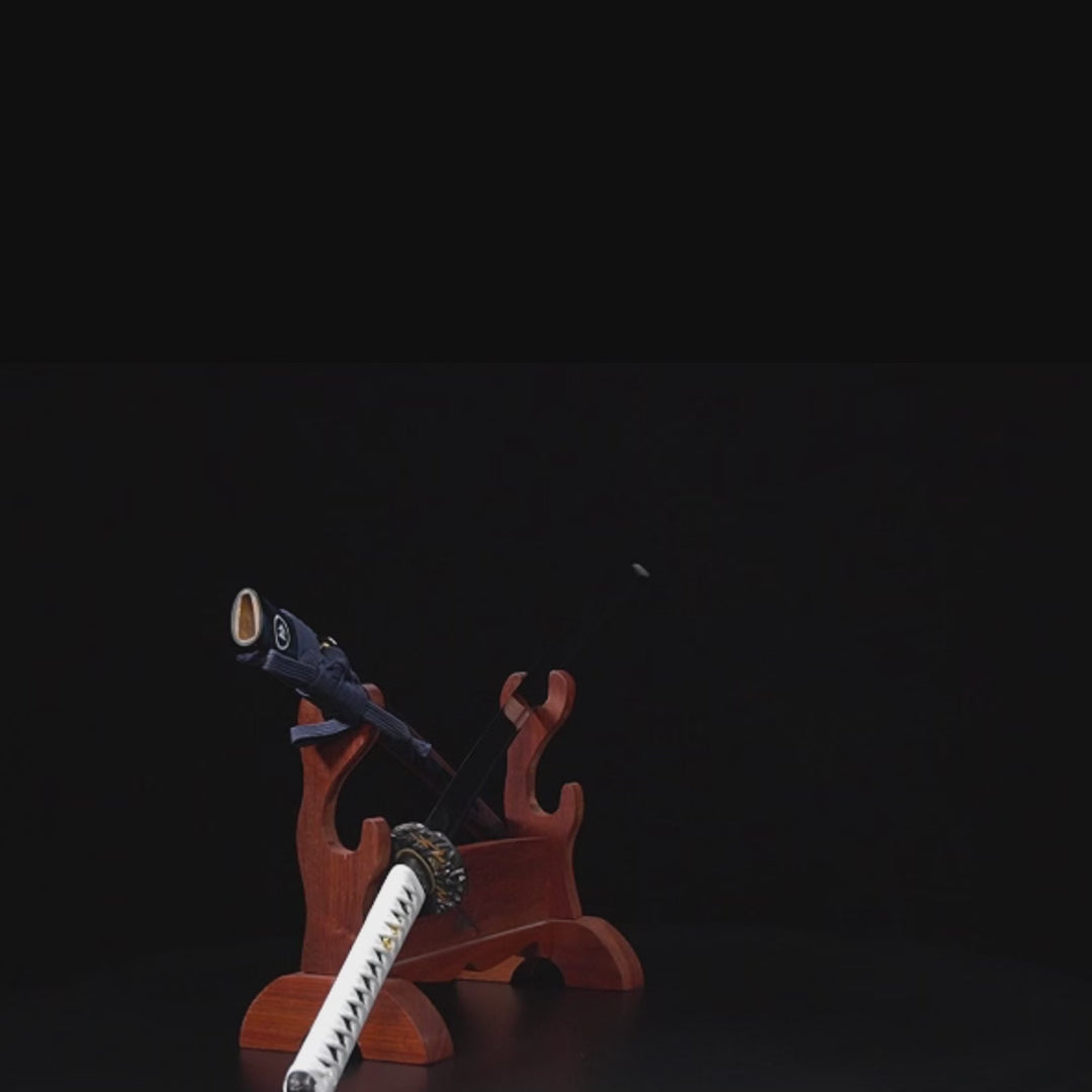 Alle unsere Katanas werden in einer Brokatschachtel geliefert, mit einem Seidenbeutel, einem Katana-Ständer, einem Echtheitszertifikat und einem geheimnisvollen Geschenk!