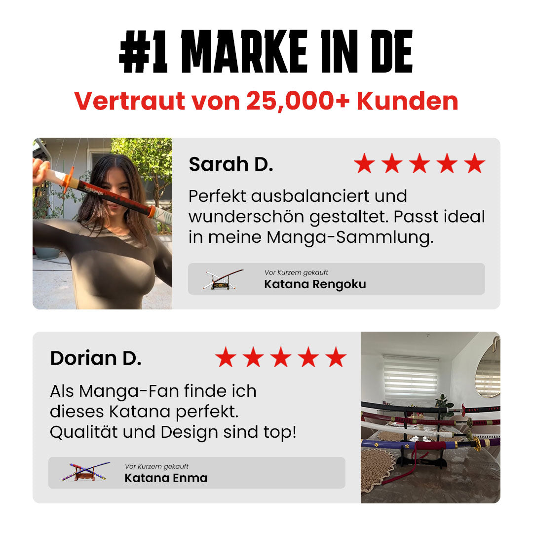 Bei Katana Deutschland sind wir stolz auf die Qualität und Handwerkskunst, die in unsere handgefertigten Katanas und Repliken einfließt.