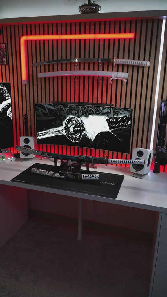 Ich habe dieses Katana direkt über meinem Bildschirm platziert, und es verleiht meinem Setup eine epische Note.